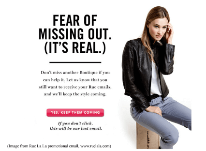These pop up from Optinmonster provide a great example of fear of missing out.