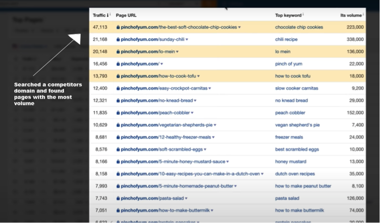 Additionally, you could search your competitor’s domain link for inspiration to see which pages are more popular than others.