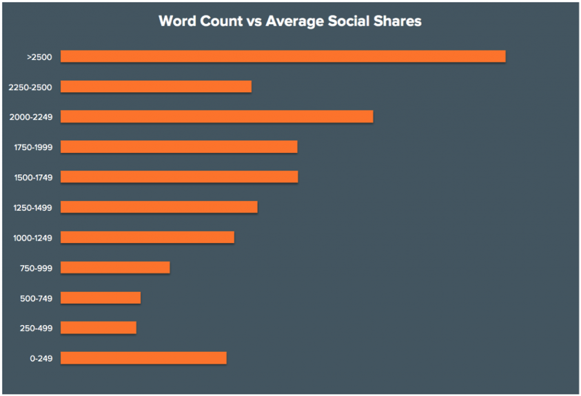 A perfect example of this is by looking at the social shares for blog posts in the finance industry. Snap Agency shared data where the word count over 2,500 had the most social shares.