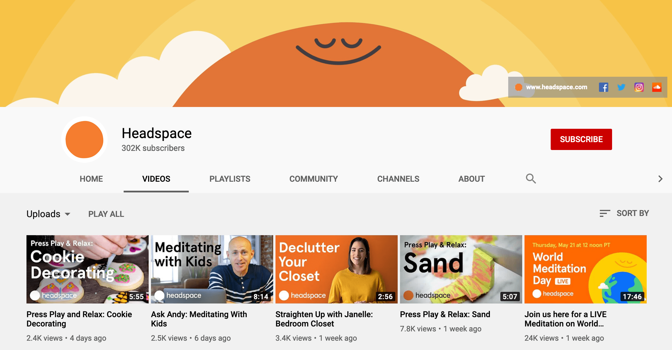 A great example of a brand that knows their category and has found a unique place within it is Headspace. Mediation videos are not in short supply on YouTube, so finding a way to stand out within all of the others is a challenge. Headspace provides unique content that keeps them within their zone but also allows them to branch off into different directions. From simply watching someone decorate cookies to relax your mind, to de-cluttering your closet to take a more active approach to relaxation.